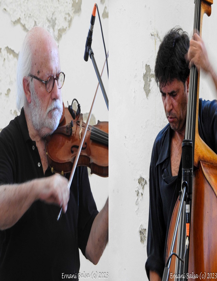 Um dueto de violino e contrabaixo que maximiza a liberdade idiomática, a contemporaneidade e o experimentalismo, através do diluir da fronteira entre dois pressupostos contrários: determinismo e indeterminismo na música. Lançaram o seu primeiro disco em duo em 2025, intitulado 'Arcada Pendular', e agora apresentam-no a solo na Casa da Cultura.